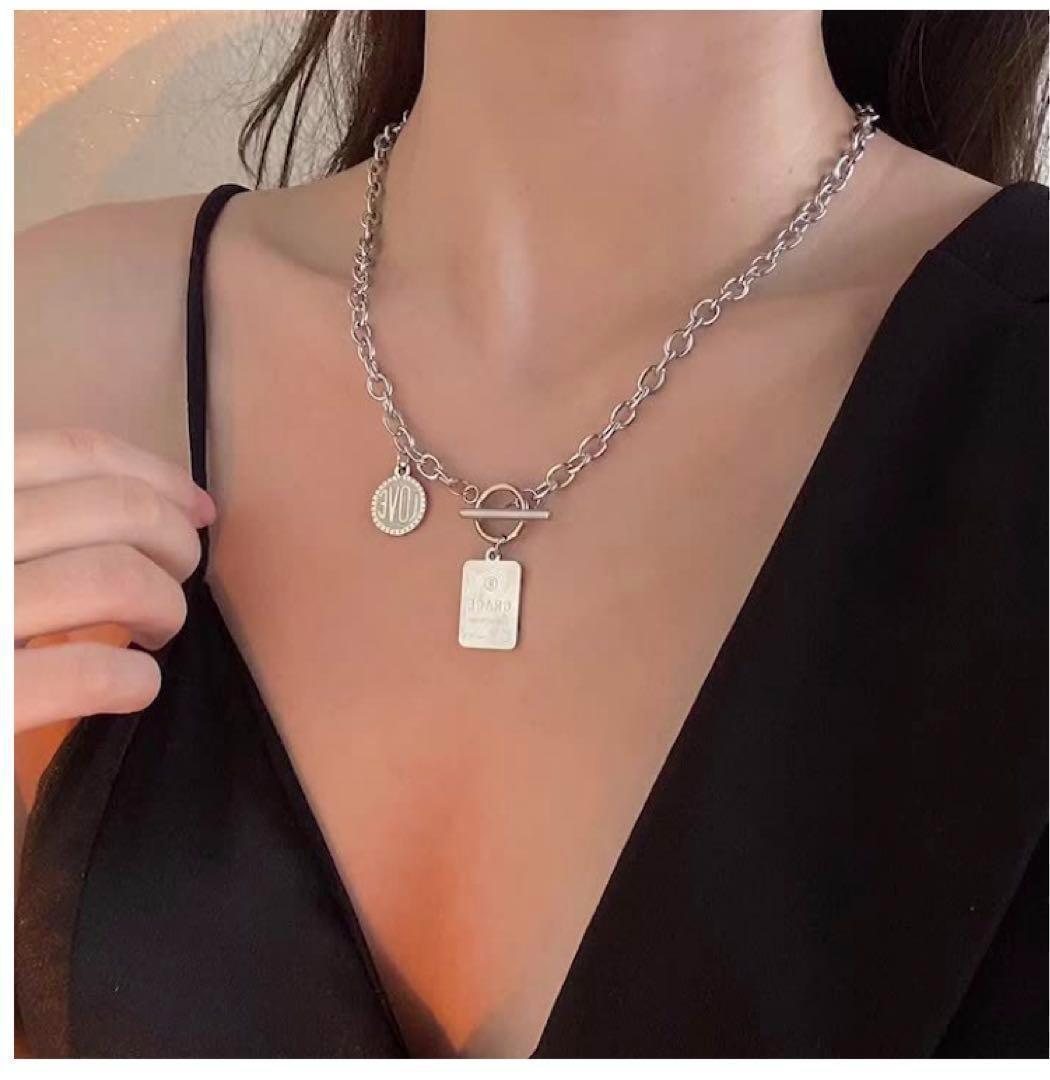チタン鋼非フェージング コイン ネックレス女性夏 新しいトレンディ イン ヒップホップ寒風ネット赤セーター チェーン男性