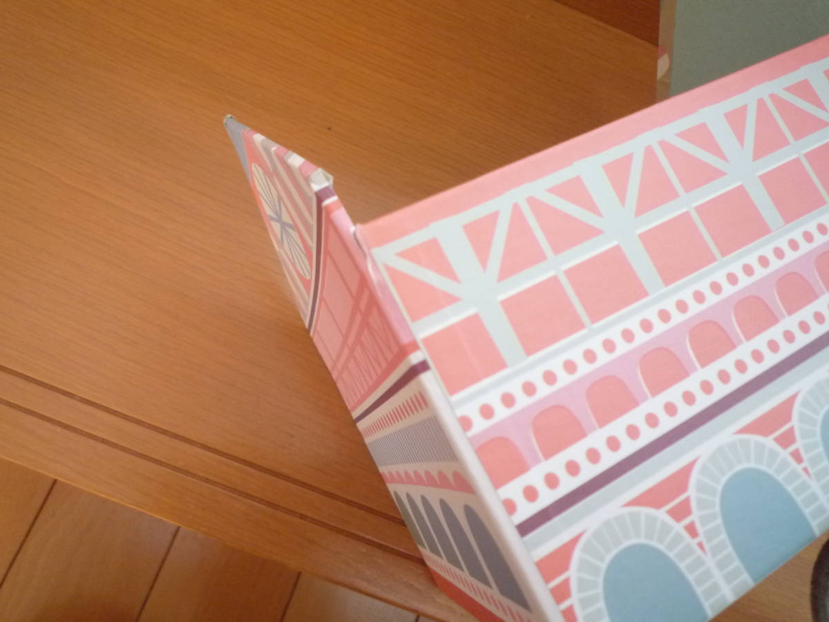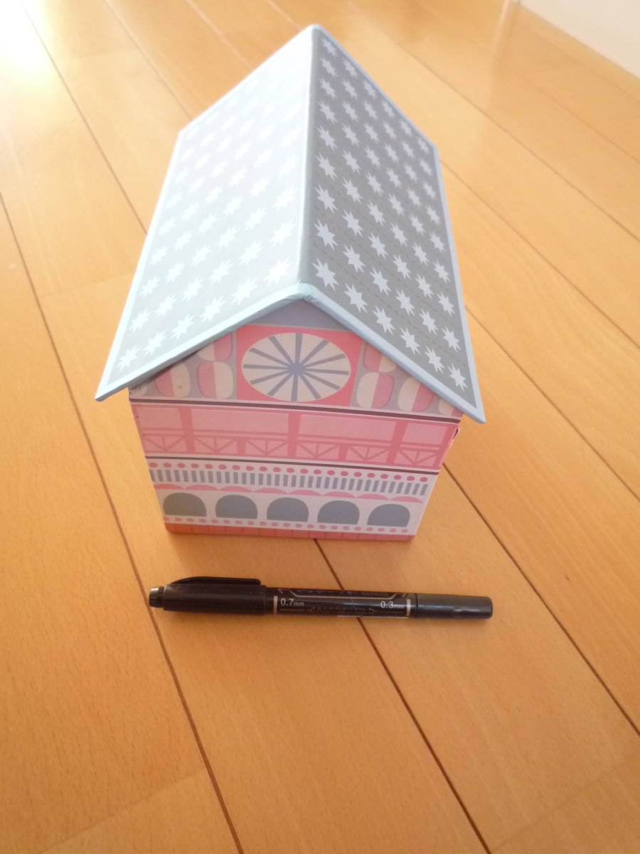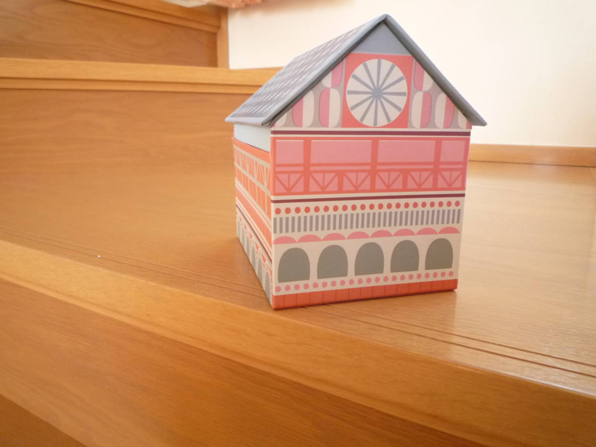 なんだかよく分からない箱ですが、形がかわいいです。 ドイツ風の木組みの家(英語で「ハーフティンバー」、ドイツ語で「ファッハヴェルクハウス」)の形をしています。 屋根をポンととって中に収納。 塗装にやや日焼けしている部分があります。 また画像6にあるように、少しだけ目立たない破れがあります。