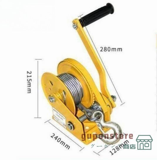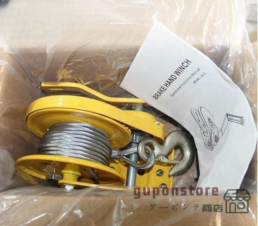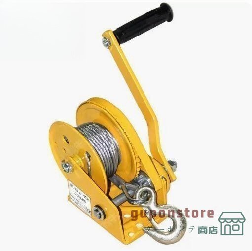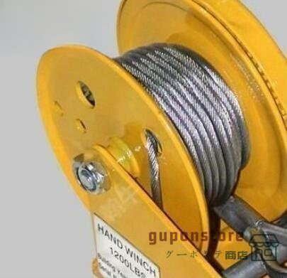 手動ウィンチ 回転式ミニウインチ ハンドウインチ 耐荷重1000kg/オートブレーキ ワイヤー8M