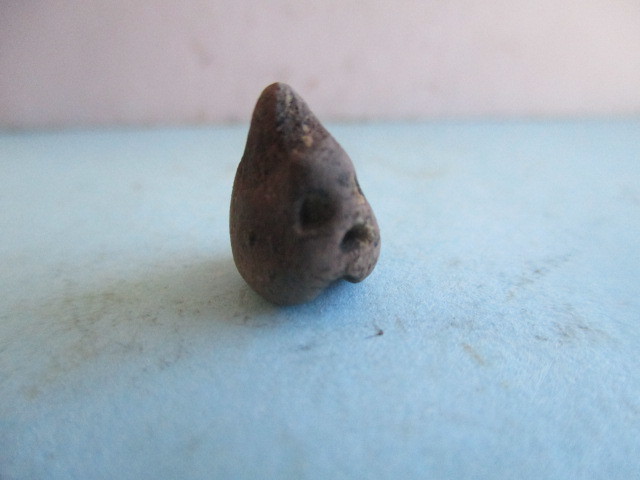 豆土偶よりも更に小さく、米土偶と命名してみました。こんなに細かい造形であっても両眼と口を備えています。両脚は底に溝を掘ることで表現されています(4枚目の画像)。青森県屈指の土偶コレクターからあずかりました。2代前のご先祖が青森県内の遺跡から発掘したそうです。遺跡名までは伝わっておりません。供物といっしょに祭壇に飾るなど祭祀的な意味があるそうです。全高約1.3cm。土中から掘り出したものですので鑑賞を妨げない程度のヒビやカケ、擦れ、表面の剥離があります。水につけると、ほんの少し土臭がします。金色に輝く微小な鉱物が少し含まれていますが、砂金ではなく、雲母であると思われます。これまで一度も鑑定に出したことがなく、正真正銘の真贋不明ですが、トラブル防止のためあえてレプリカとして出品させていただきます。自己紹介欄にオークション休業日を記載させていただいております。お手数とは存じますが、ご入札前にお読みいただければ幸いです。よろしくお願い申し上げます。