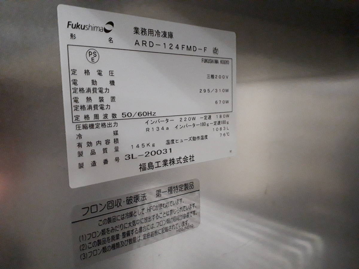 | ■FUKUSHIMA フクシマ工業 業務用冷凍庫 ARD-124FMD-F 三相200V 4ドア 冷凍庫 業務用 店舗用品 飲食店 中古 | |