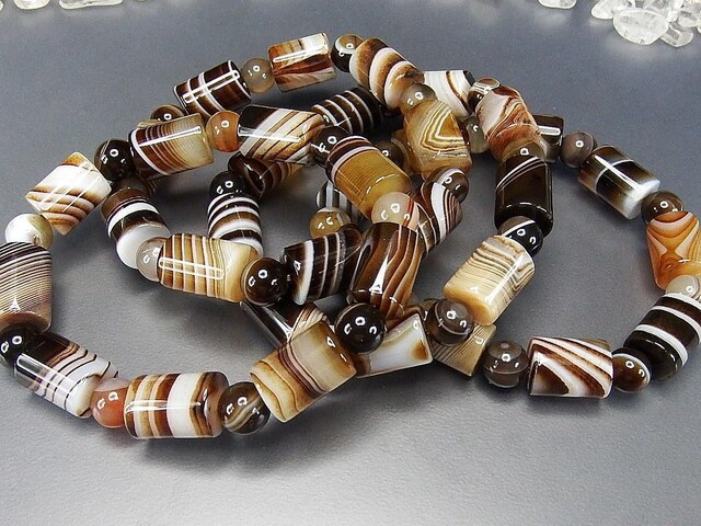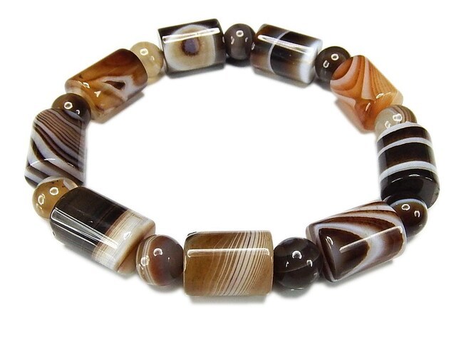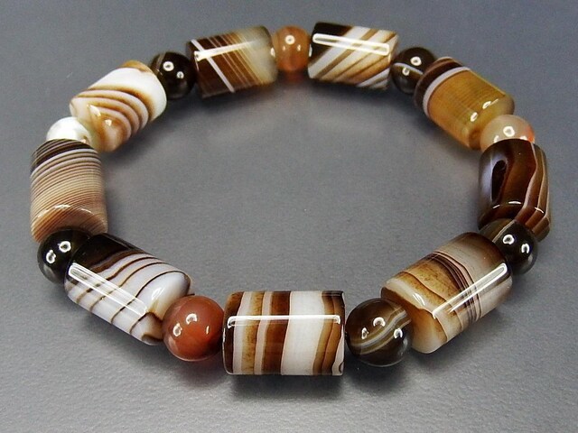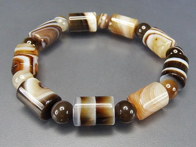 天然石綺麗ブラウン色系レース入りアゲート円柱形タンプル デザインブレスレットプライム