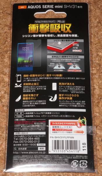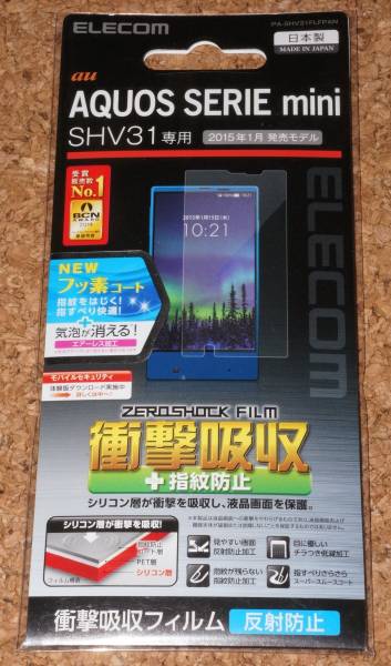 ELECOM AQUOS SERIE mini SHV31 液晶保護フィルム ZEROSHOCK FILM 衝撃吸収+指紋防止 反射防止 新品・未開封です。