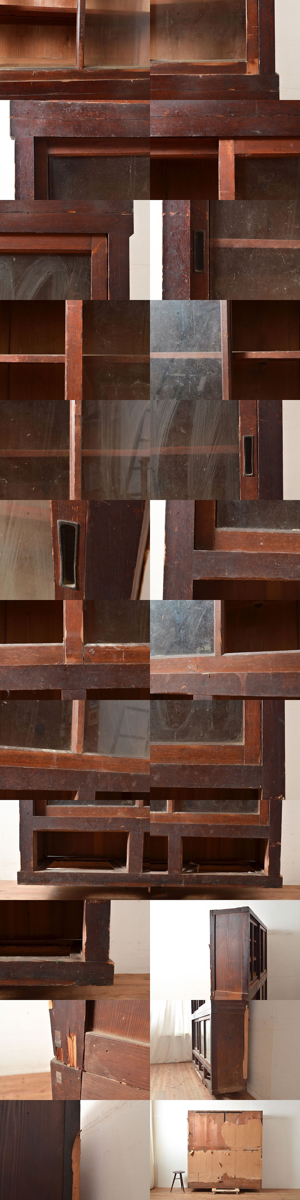 R-048345 和製アンティーク 前面ヒノキ材 どこか懐かしさを感じる時代の味が魅力的な重ね戸棚(収納棚、食器棚、キャビネット)(R-048345)