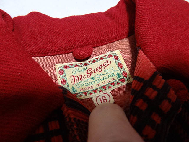 ビンテージ マクレガー 希少 筆記タグ 40S 50S チェック 総柄 プリント コーデュロイ 赤 ニット シャツ ジャケット レッド ブラック 黒 珍
