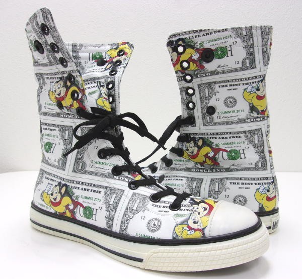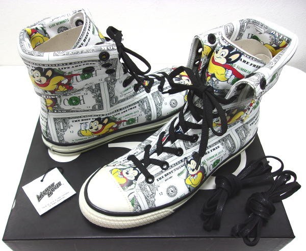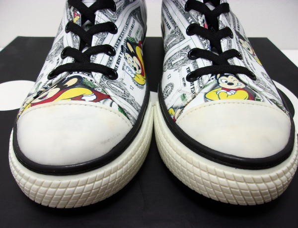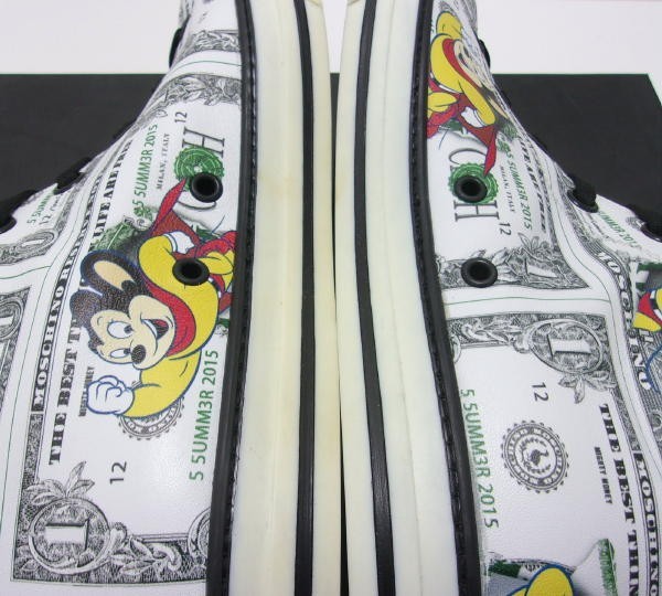 Mouse(マイティーマウス)”とのコラボレーションレザースニーカー新品です。 靴紐は伸びる靴紐に変えています。 画像に写っていますオリジナルの靴紐は付属致します。 ラバー部分に汚れと変色、ロゴに擦れがあります。 画像参照して下さい。 箱には傷みがあります。 ご理解の上、ご入札をお願いいたします。 定価は¥110.000+税です。 表記サイズ 42(27cm相当) 実寸サイズ アウトソール 30cm×10cm 総高:24cm(画像1枚目の上部を折った状態で18cm) カラー ホワイト系 素材 牛革 |