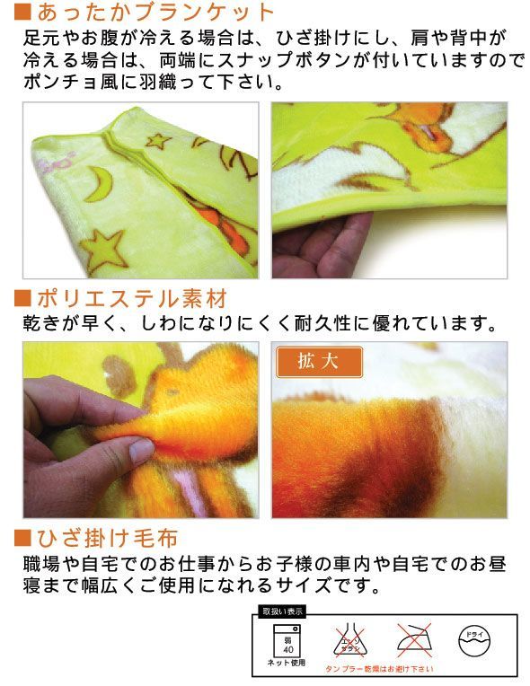 ふっかふか肌触りのよいマイヤー素材で暖かいので、寒い時期にはとっても便利ですよ♪