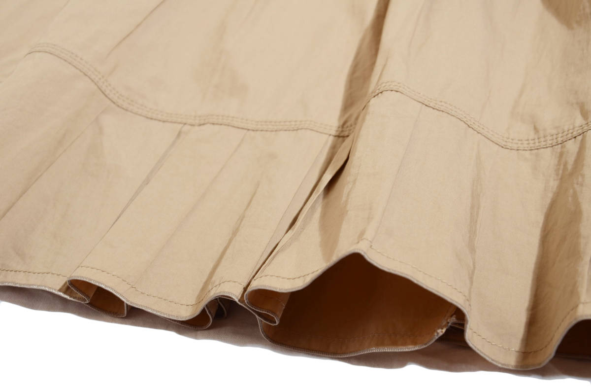ヒップと裾に切替があり、それぞれプリーツをたたんだ