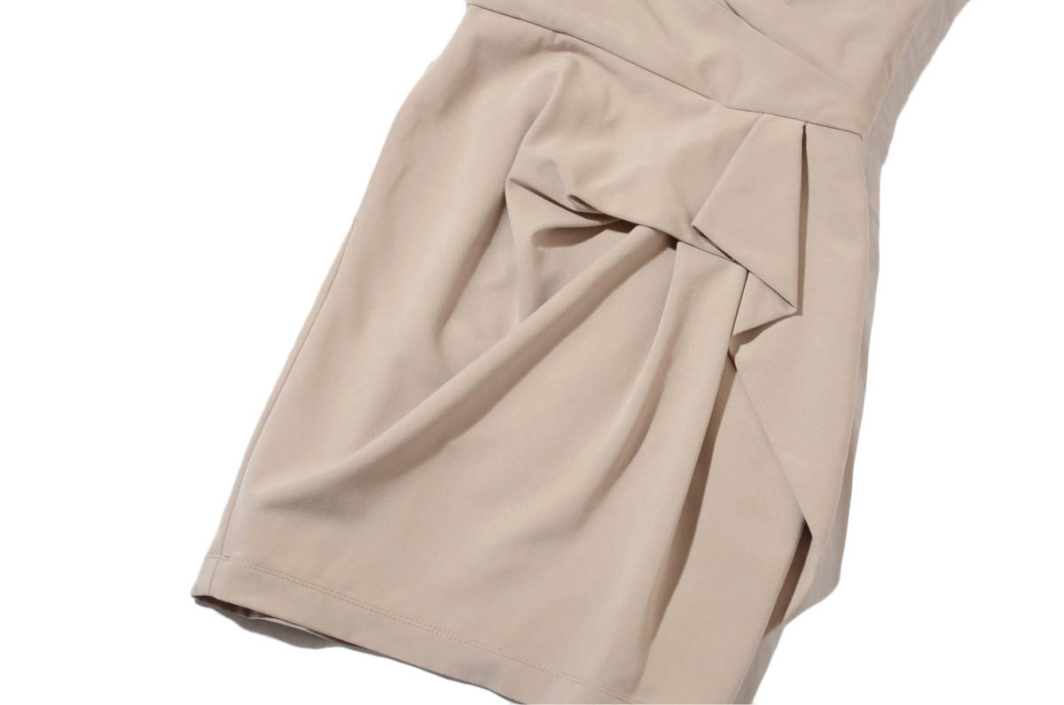 デコラティブなフロントタックデザインが素敵な BCBGマックスアズリアのベージュのミニドレスです。