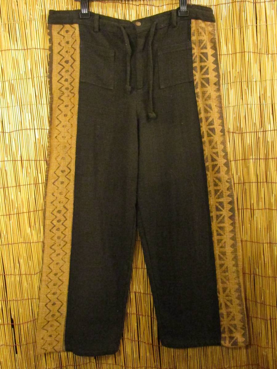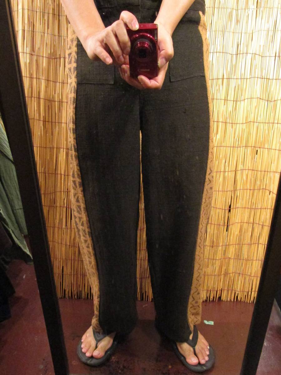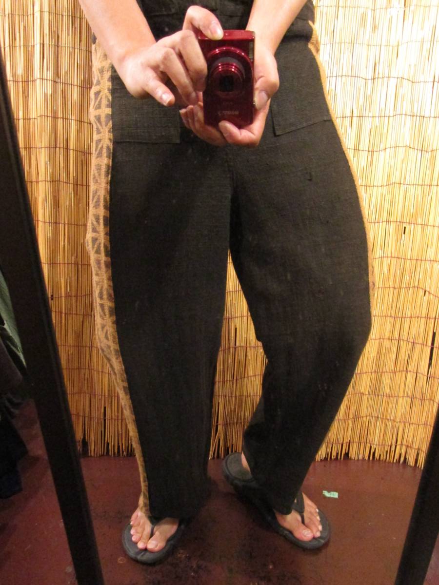 ①新品*男女兼用*粗織りコットン素材*サイド切り替え*ストレートパンツ