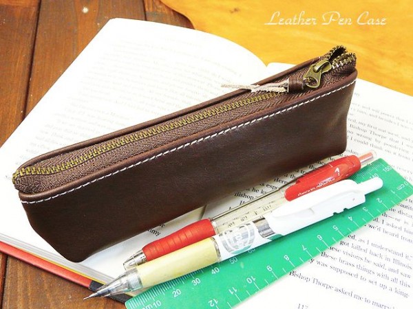 送料無料 可愛い舟形レザーペンケース 革筆箱 lsy08 Dブラウン
