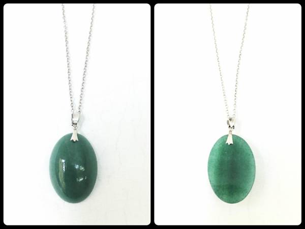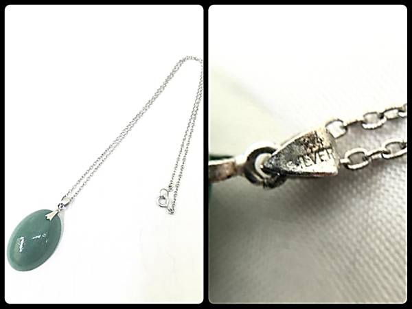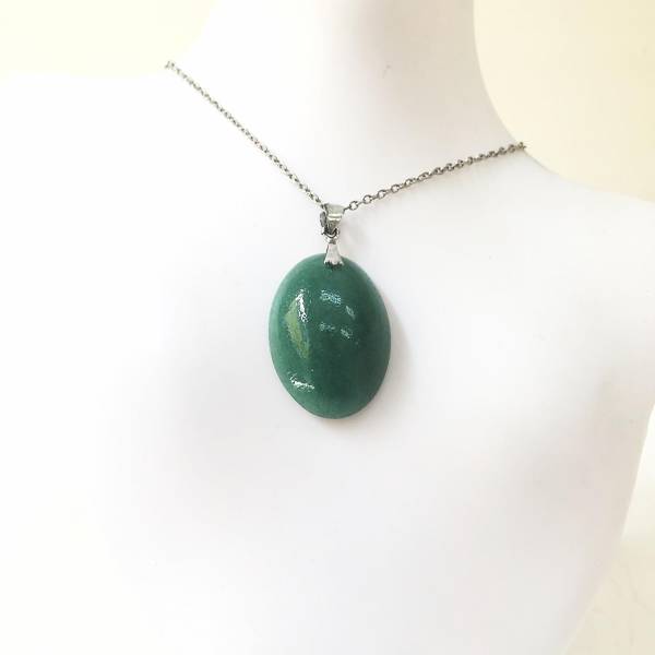 【ネックレス】約40cm 濃い緑色が目を惹くペンダント オーバル 緑 グリーン SILVER シルバー