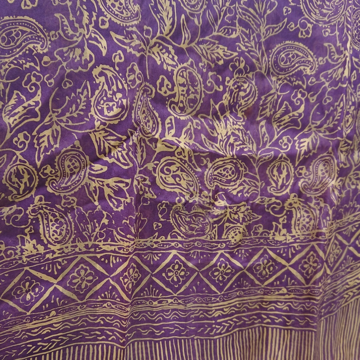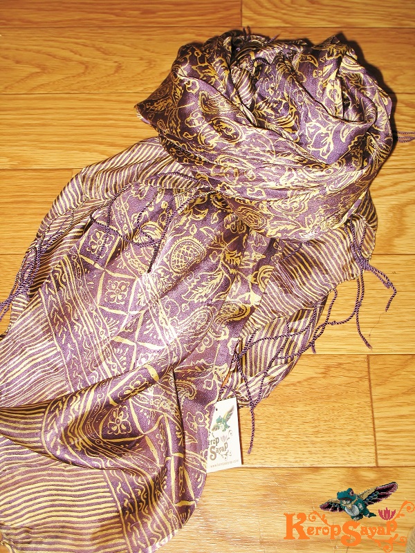 上品な光沢☆単色バティックサテンシルクストールスカーフ M-D紫パープル silk絹100%天然素材 ろうけつ染め バリ雑貨 90×150㎝