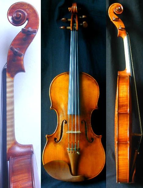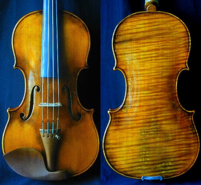 この楽器は譚建華〔タン・チェン・ファ〕氏のマスターメイド・バイオリンで モデルは Guarneri del Gesu 1739 ex Ebersolt-Menuhin 、 完成は2006年の楽器です。 材料は25年以上自然乾燥させた古材、アンティーク調レプリカ、 オイルニスで仕上げています。 サイズは BL:352(mm) UB:164 MB:109 LB:204 譚建華氏の楽器の特徴はその音色にあり、 深みを持った古い楽器に通じる独特の音色があります。 高音部も艶と透明感がしっくりと伝わる感じで”本当に新作なの?” と思わせます。 私個人は2003年にホールで譚建華氏の楽器の音色を初めて聴いた時、 「え?新作なんだろうか?古い楽器の音色がする!」と思い、 ずっと気にかけていた製作者でした。 あるイベントで弓製作者のRong-Di MA と同じホテルに滞在していた時、 同じフロアーからとても美しい音色のバイオリンの音がして、 MA先生に「良い音だね、誰だろう?」と話していた所、 MA先生曰く、「あれは譚建華氏が自分の製作した楽器を弾いているんだ」、 と教えられましたのでMA先生に頼んで譚建華氏に会わせて頂きました。 譚建華氏は私が知る製作者の中で一番演奏も上手な製作者です。 結局、その「美しい音色のバイオリン」が今回の出品の楽器になりました。(^^ 譚建華氏の楽器製作は既に40年を超え、 主眼として古い楽器の音色研究を続けておられます。 Gio Batta Morassiや偉大なメニューインとも親交を重ねた 中国広州で歴史に名を残す製作者の1人です。 製作ポリシーは自然乾燥させた材を使う、 自己満足で無く、プロの演奏家の意見を取り入れ一緒に研究する、 安定性、操作性を重視する、 だそうです。 ★譚建華氏のホームページですのでご参考下さい。 https://www.gzwame.com/ 当方は譚建華氏に正式に日本での販売代理を任せて頂き、 出品価格は彼から直接お求め頂く価格に合わせております。