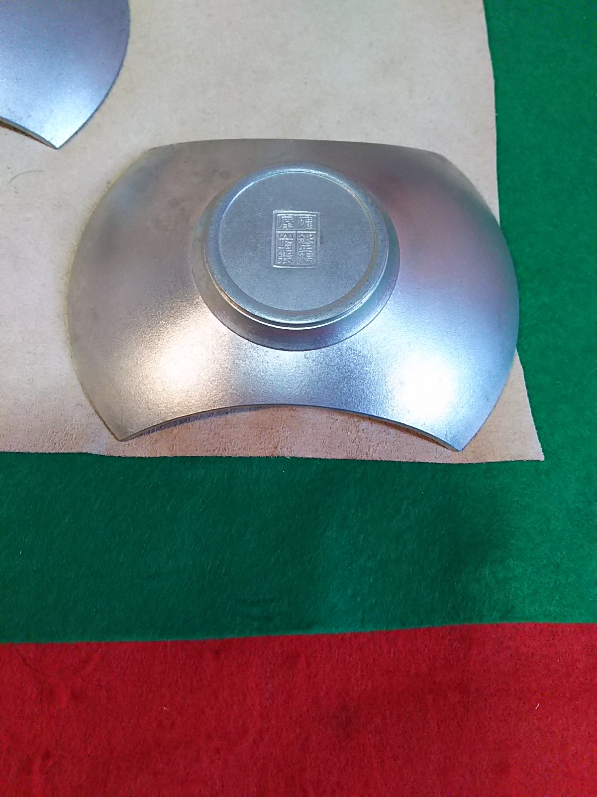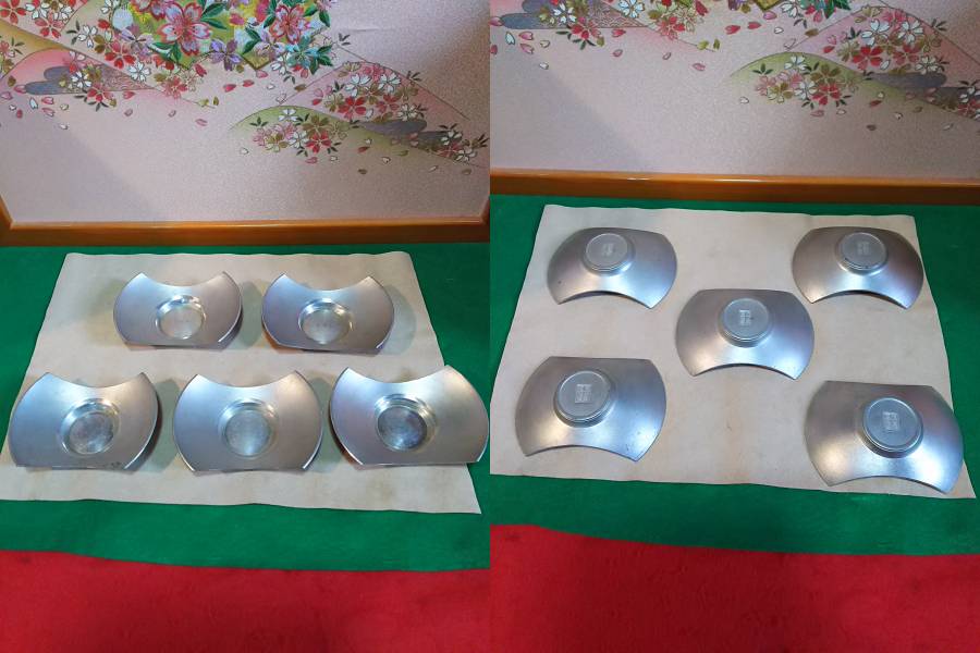 )うぶだし骨董本錫製薩摩山崎製大型茶托5客 サイズ横幅13,2センチ 縦9,2センチ 1枚あたり重量173グラム 5枚総重量878グラム 薩摩本錫山崎製高級大型茶托です。 状態小傷等あるもの状態良好です。滅多にでない大型茶托です。 詳しくは、写真参照で御願いします。 古品につきノンクレームノンリターンで御願いします。 落札後48時間以内で連絡御願いします1週間以内で入金御願いします。 発送ゆうパック60サイズ発送です.注意喚起当方は、ヤフーオークションの販売のみです。個人ネット販売サイトが個人ネットショップで私ども商品写真文章コピーし貼り付けて半額以下で販売する業者がいます悪徳業者在庫ありませんので注意ください。現在ヤフーオークションに相談かけてます。 違法アップロードになります。法的罰せられます。