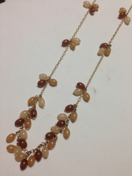 樹脂の木の葉の色のロングネックレスです、ネックレスの長さは80センチです