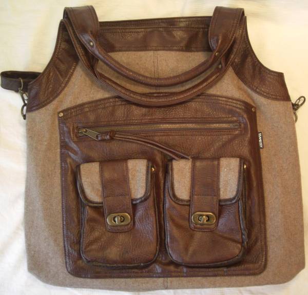 ★オシャレな落ち着いたフェルト風の布地に皮のフレームとポケットが付いて居り