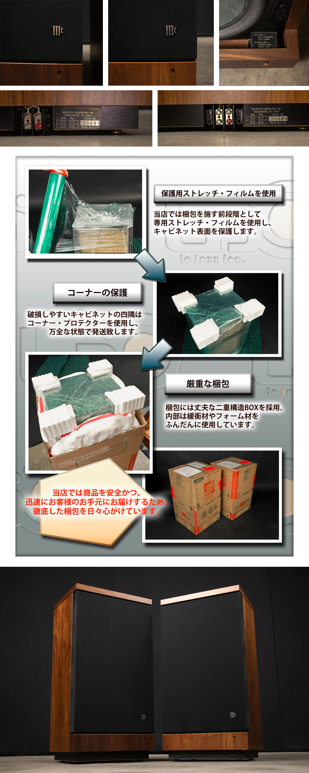 ◆McIntosh XR5 ◆ マッキントッシュ ◆ フロア型4Wayスピーカー ペア◆ [概要] 本品は1976年から1980年までにマッキントッシュ社から発売された4wayスピーカー、XR5です。 [仕様] スピーカーコーン紙、エッジ共にヘタリや硬化などなく良好です。 [エンクロージャー仕様] 年代物でありながら外観はもちろんのことエンクロージャー内部もとても良い状態です。 [動作確認映像] 動作音出し確認保証有り。 ![]() [備考] 輸送中の不慮の事故でも、老舗オーディオ店が責任を持って [発送方法] ■航空便■ [International Customers] * We will ship worldwide. |