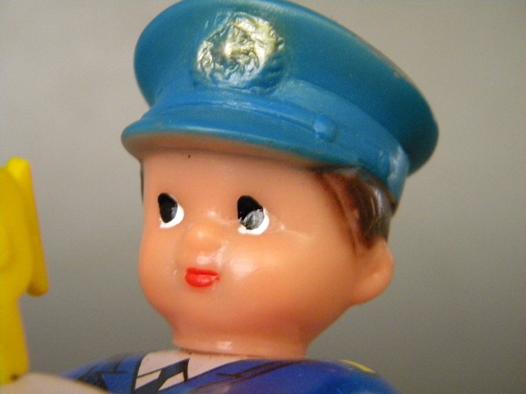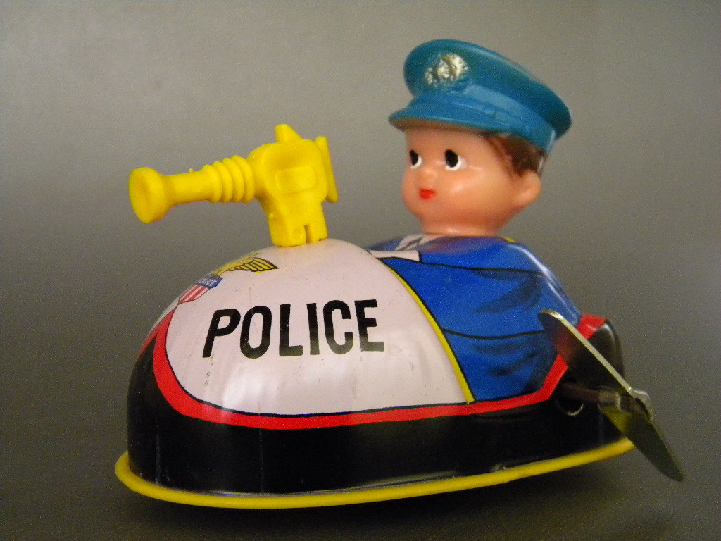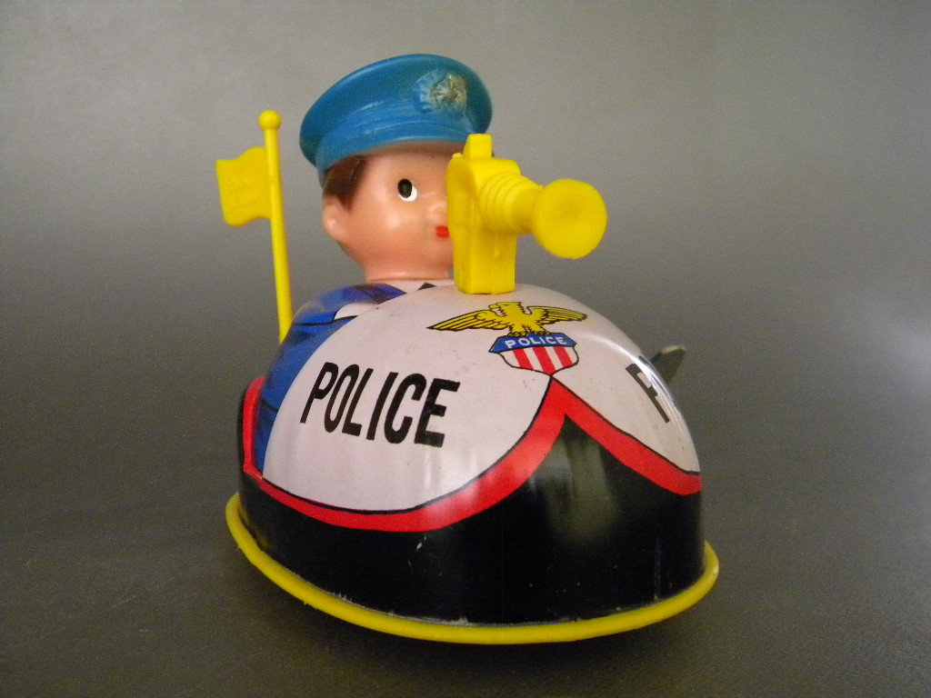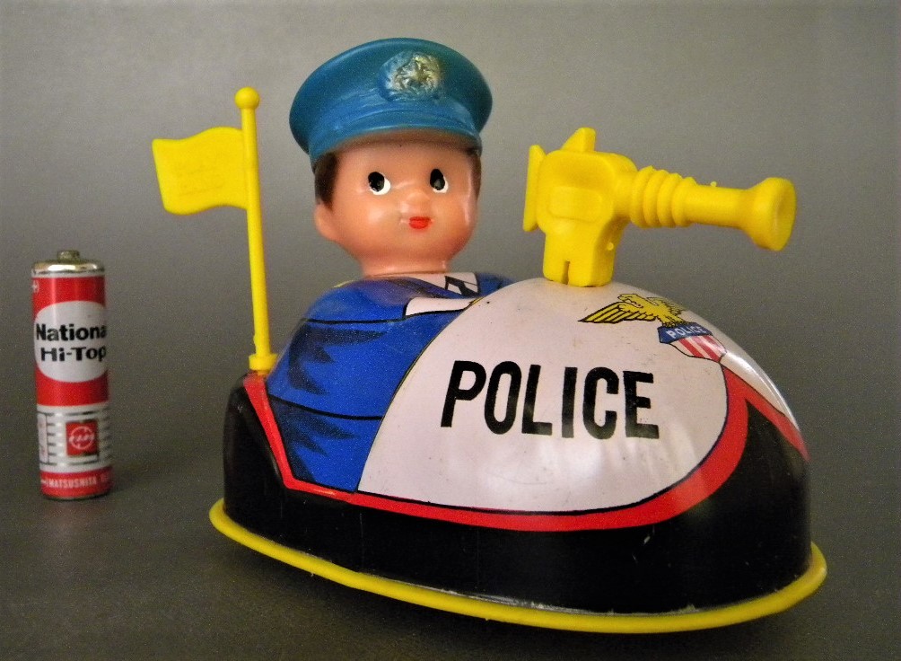 ●当時物 ★★POLICE こどもカート 作動良好 !! ゼンマイ走行転回 日本製ソフビ/ブリキ製 パトカー 「定形外/LP可」★★未使用 デッドストック品