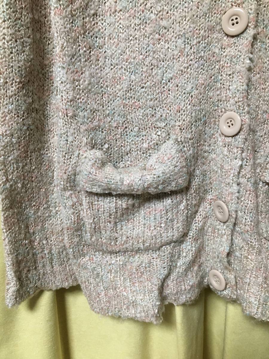 モコモコしていて暖かく見た目も女子っぽくてcuteなニットカーディで、ポケット口がリボンになっていてオシャレです♪