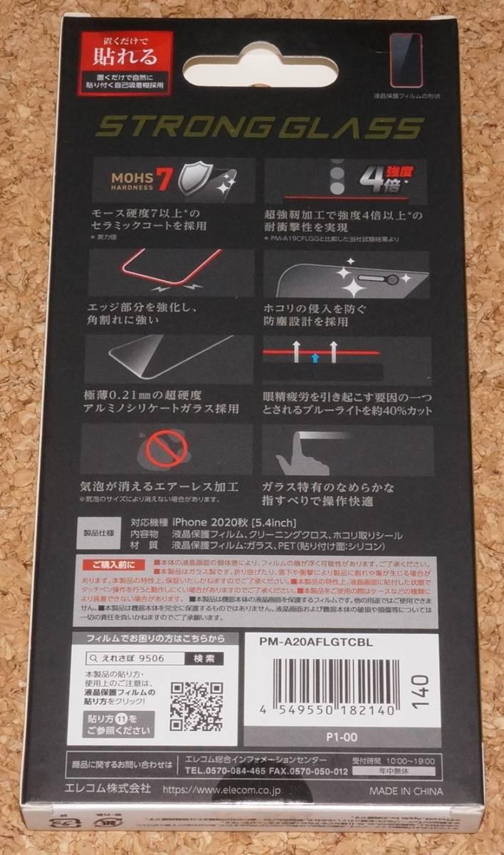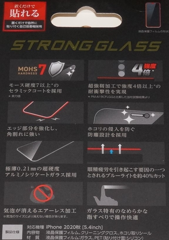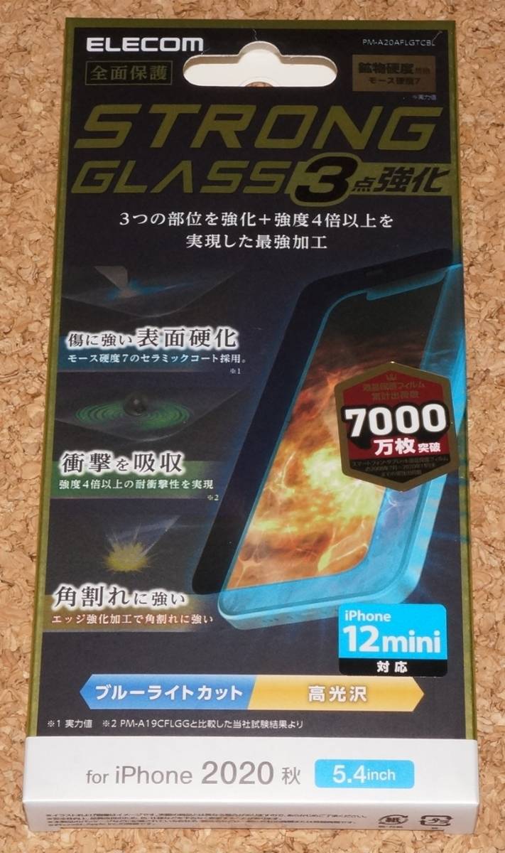 ELECOM iPhone12mini ガラスフィルム ストロング セラミックコート 衝撃吸収 エッジ強化 ブルーライトカット 高光沢 新品・未開封です。