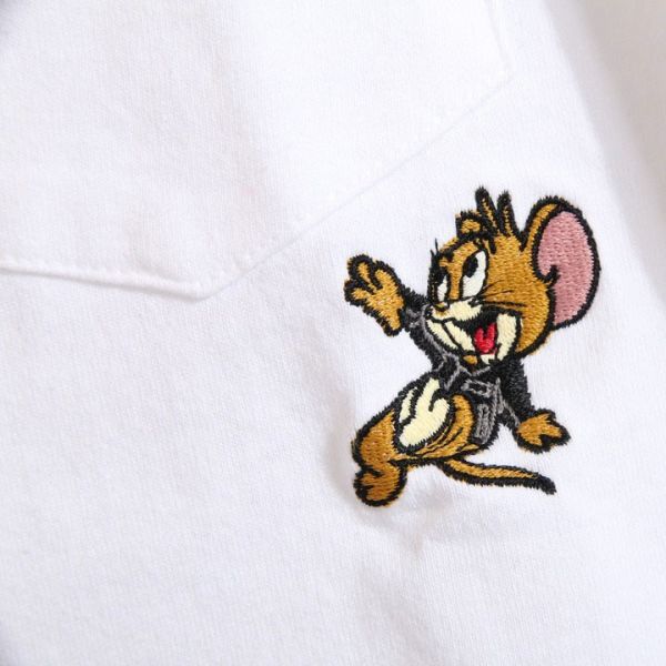 サイドに縫い目がない6.2oz空紡天竺製の丸胴ボディに、左胸ポケット…トム&ジェリーを絶妙なレイアウトで刺繍した、半袖Teeが登場!