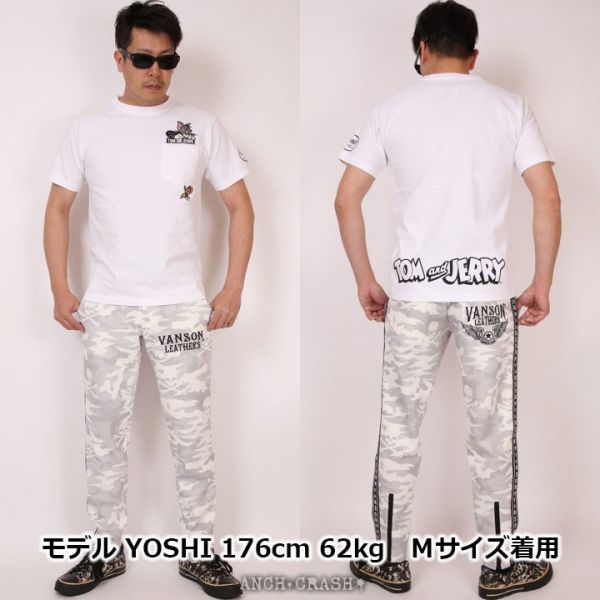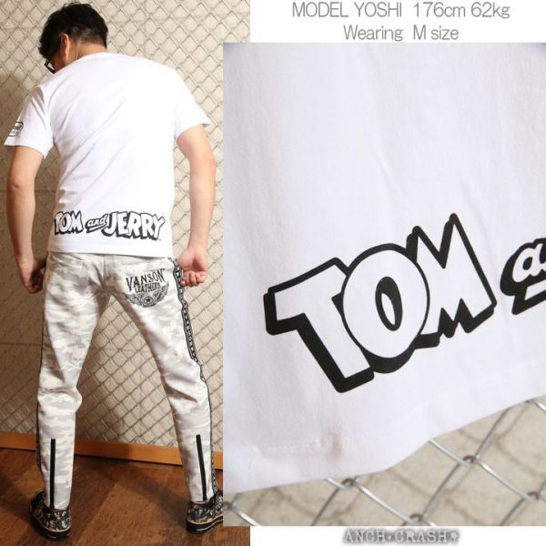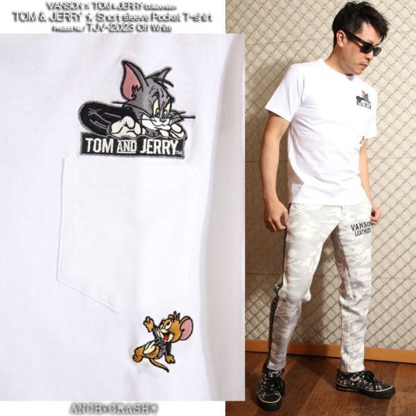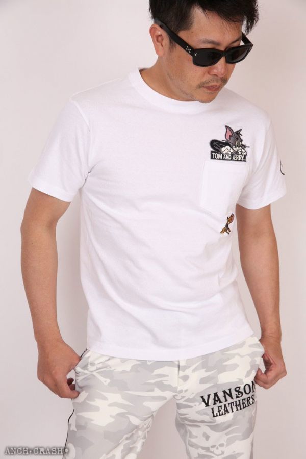 バンソン VANSON トムとジェリー コラボ 半袖 Tシャツ ホワイト【XXLサイズ】TJV-2023 TOM AND JERRY 刺繍 アメカジ