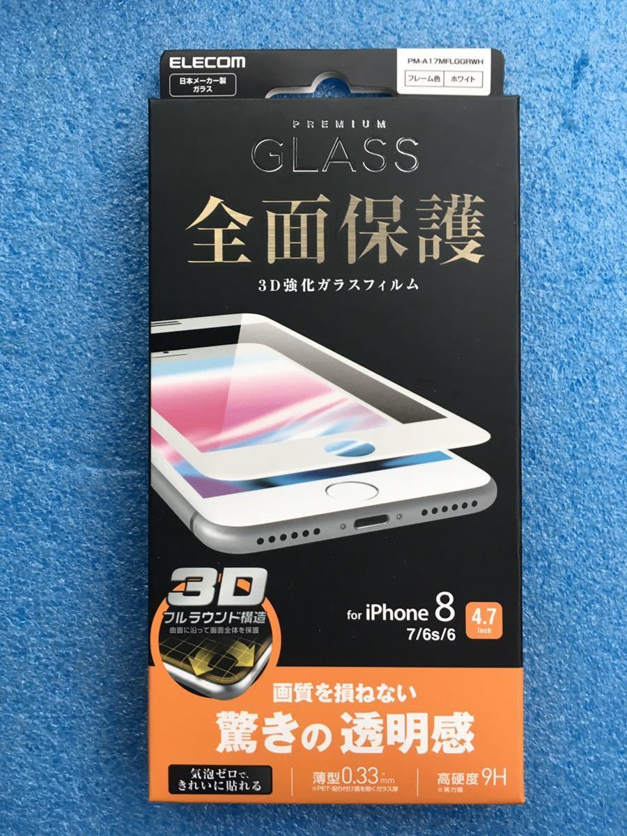 [iPhone 8/7/6s/6用 フルカバー ガラス 0.33mm ホワイト]