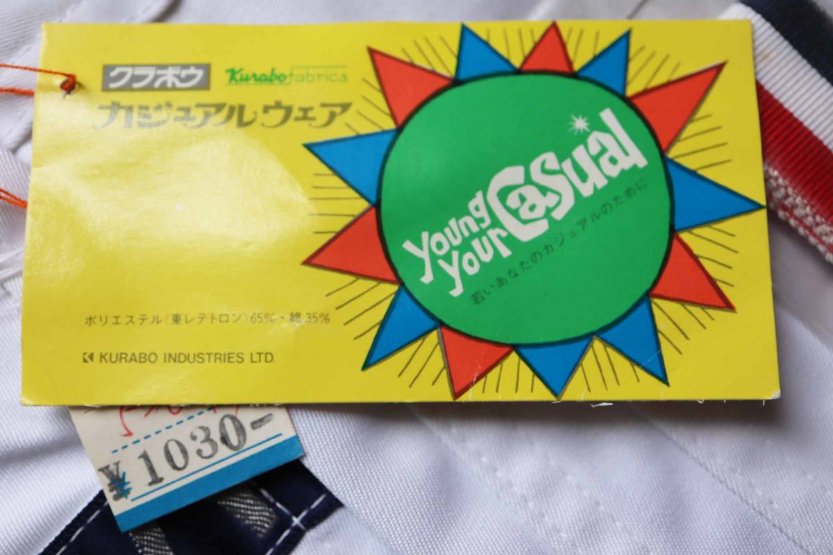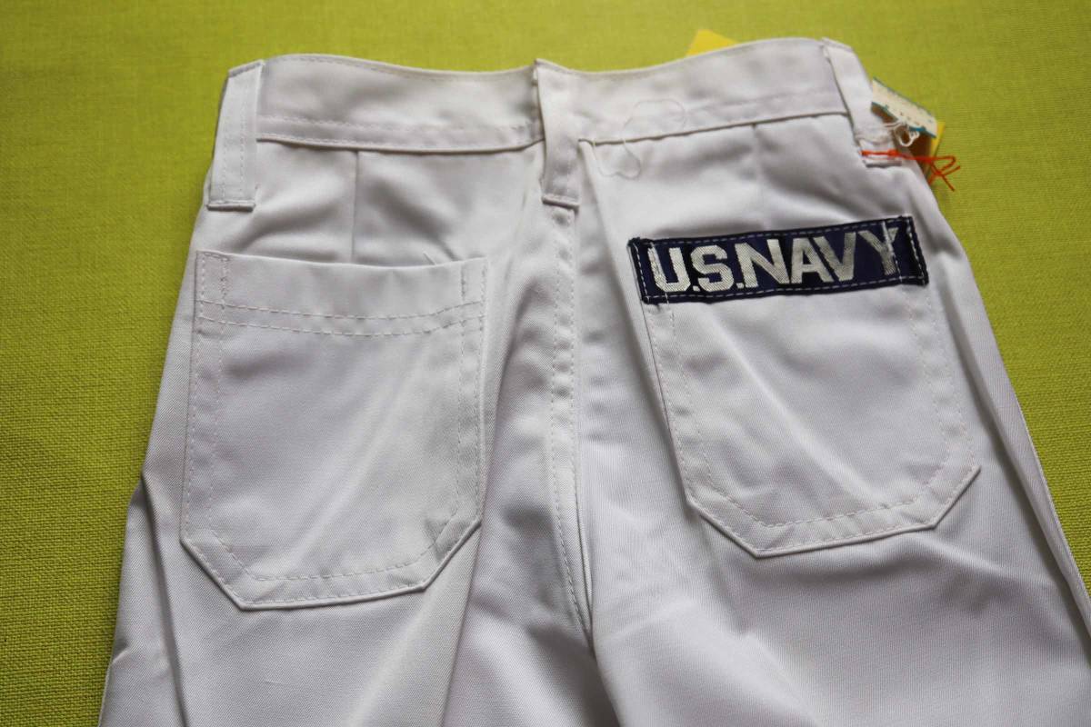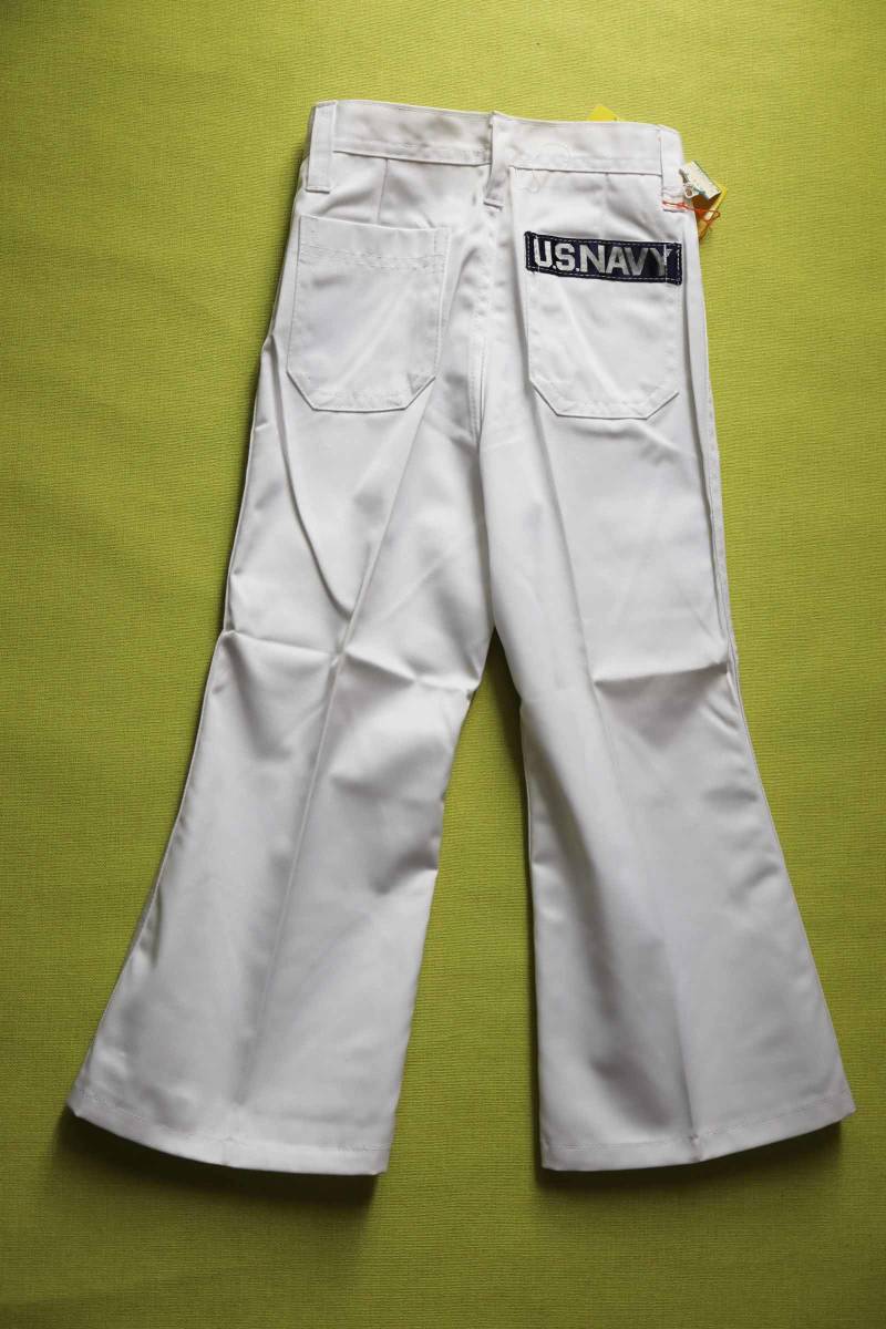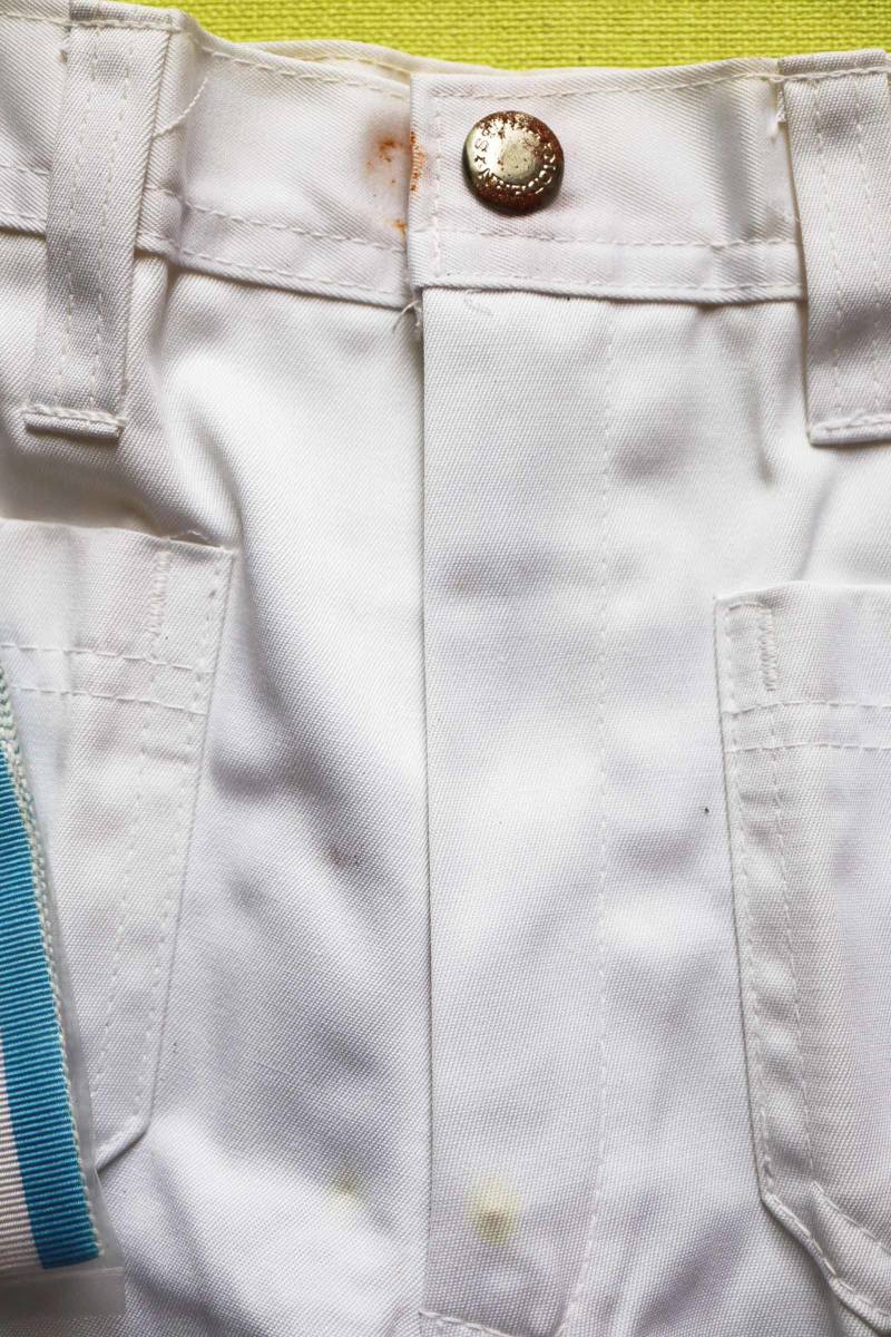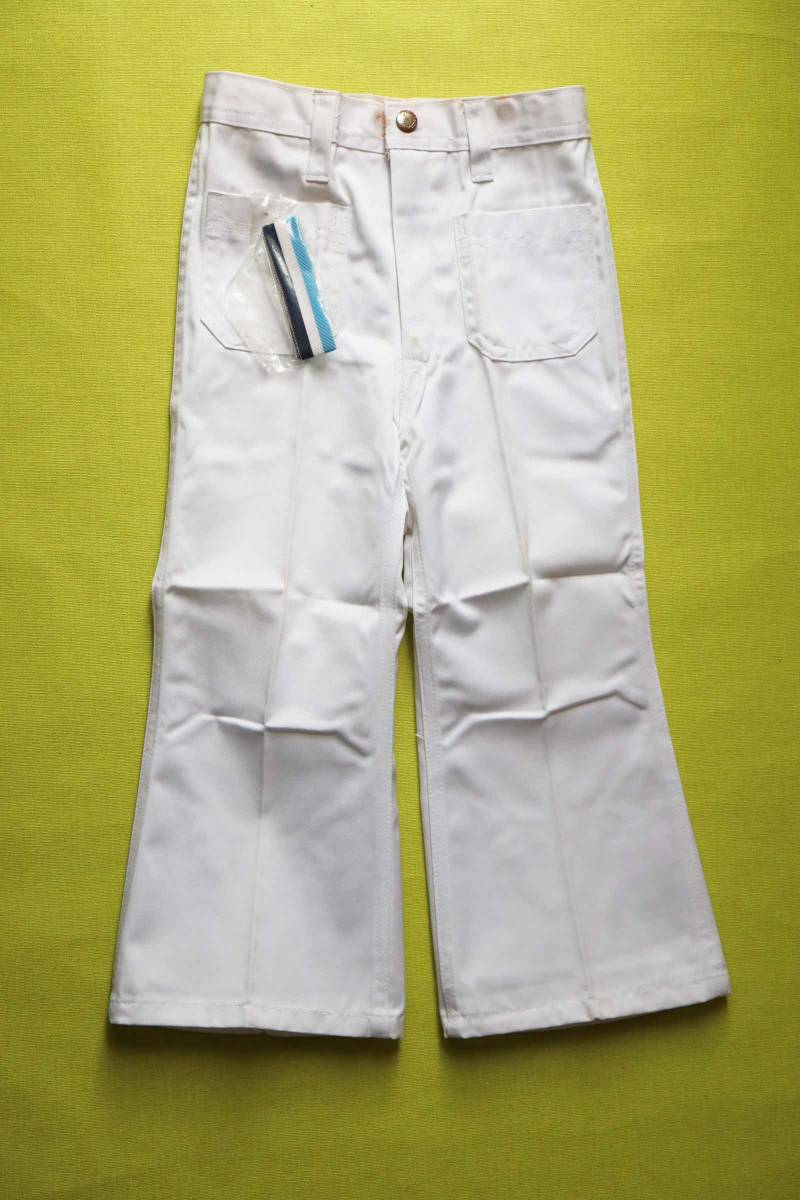 昭和の時代のパンタロン。 ブーツカット。 後ろポケットのロゴがかわいいです。 サラリとした感触の綿・ポリ。 春夏に好適。 前はファスナー&スナップボタン(取り換えが必要)。 裏地なし。 ポケット前後に各2。 ベルト通しなし。 脇ゴムなし。 付属の3色のバンドは、何に使うのか、正直なところ分かりません。 「5才 108cm」の表記です。 下記の実寸をご参考下さい。 ◆メーカー希望小売価格:@1030 ◆素材 :ポリエステル65 綿35 ◆実寸 :ウエスト52 ヒップ66 股上23 股下41 わたり22 裾幅21 ※こちらのお品物は、デッドストックです。 生地自体は傷はありません。 が、長期保管品ですので、どうしても、薄く汚れた白になります。 ファスナーは、問題なく上がります。 が、スナップボタンは取り換えが必要です。 その周辺は錆びの色が移っています。 このような点を改善してくださる方、よろしくお願い致します。 落札の際は、その旨ご了承ください。 | |||