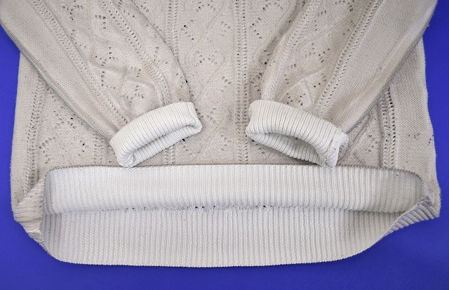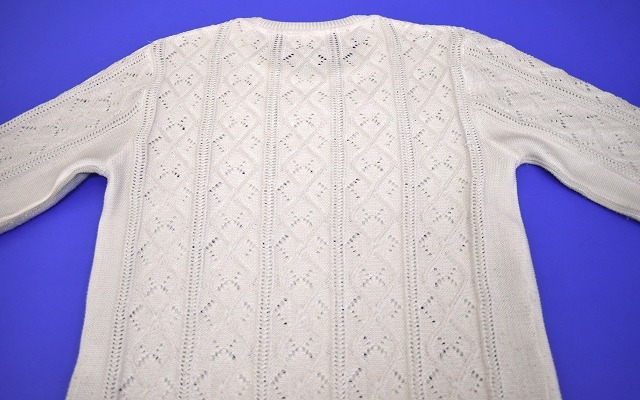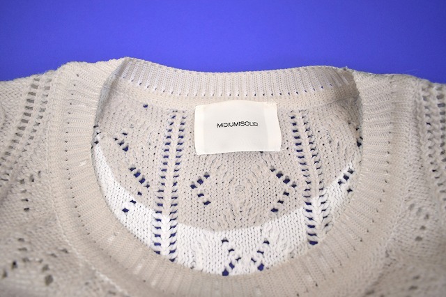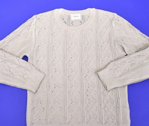 「MIDIUMISOLID(ミディウミソリッド) 」の ケーブル編み クルーネックニット コーティング です。
