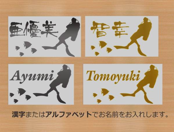 ●お名前入りダイバーステッカー ●金色または銀色のどちらか色をお選び下さい。 ご落札後「取引メッセージ」にて、「お入れする文字」「色」のご連絡をお願いします。 落札価格は、1枚の値段です。 発送方法について |