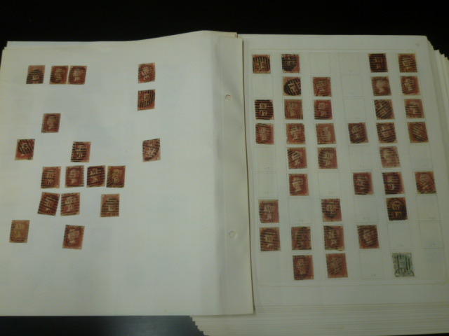19 B37 イギリス切手 1864年 SC#33 レッドペニー 1P 消印タイプ・ 楕円局番印 32リーフ 430枚+. $1550+. 大部分 印影大美消