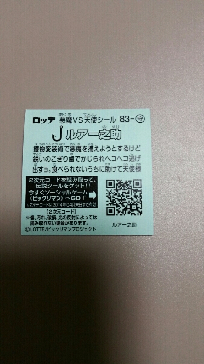 ロッテ ビックリマン ルアーの助 83-守です。