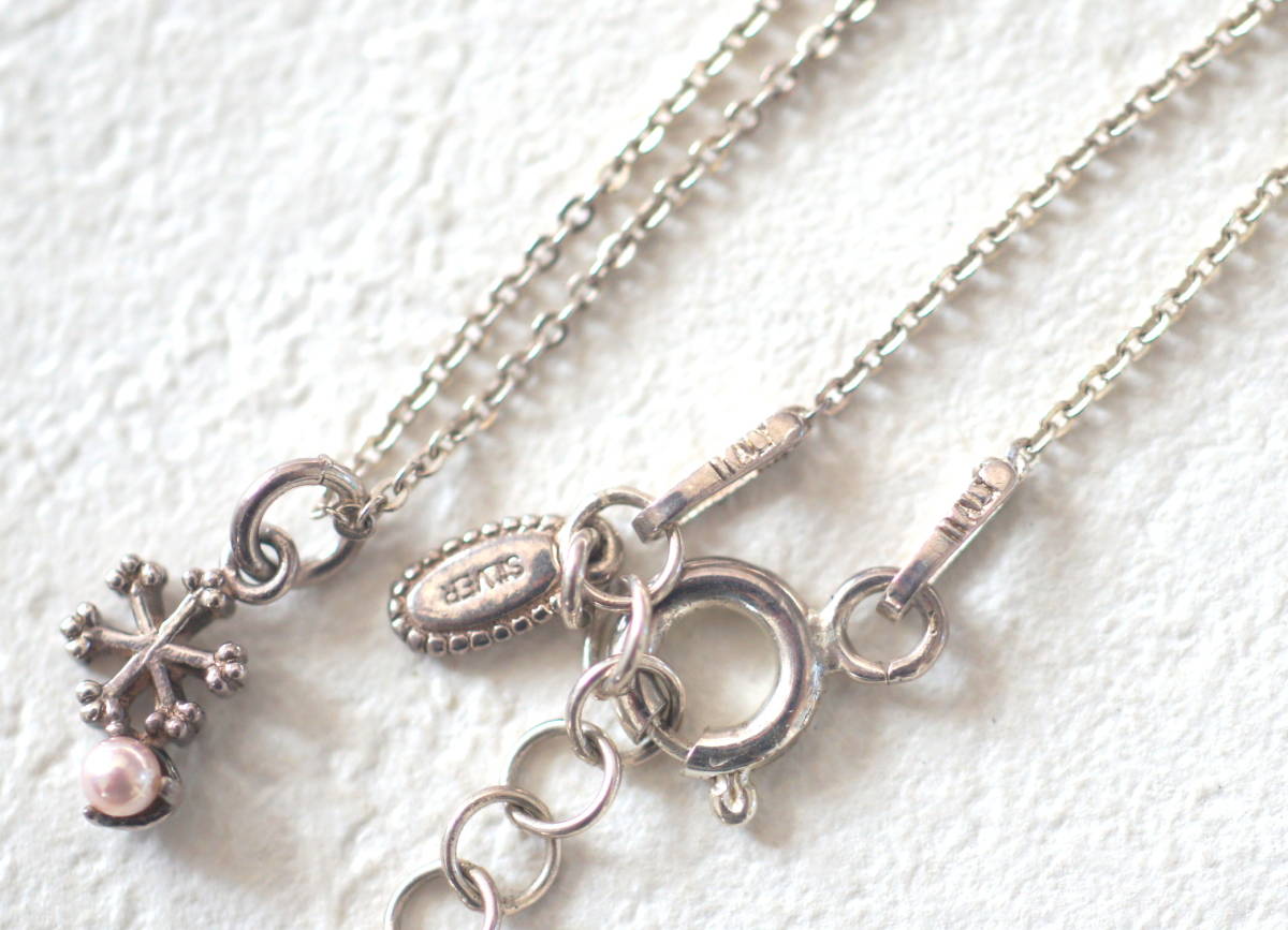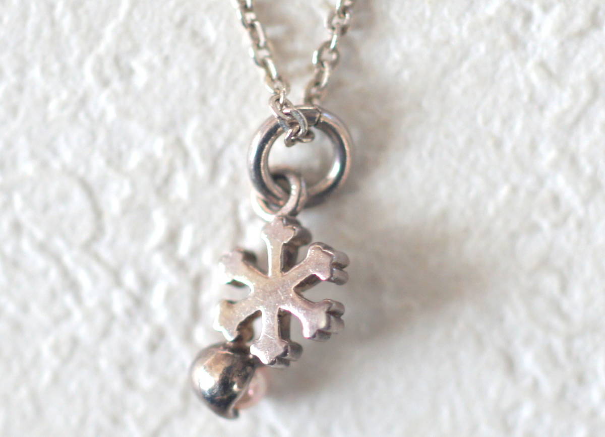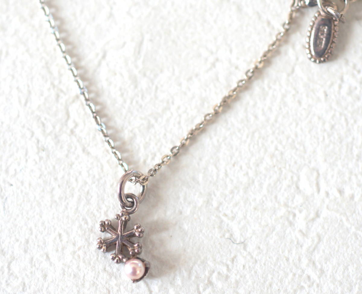シルバー925製 小さな雪の結晶と小さなパール付きネックレス