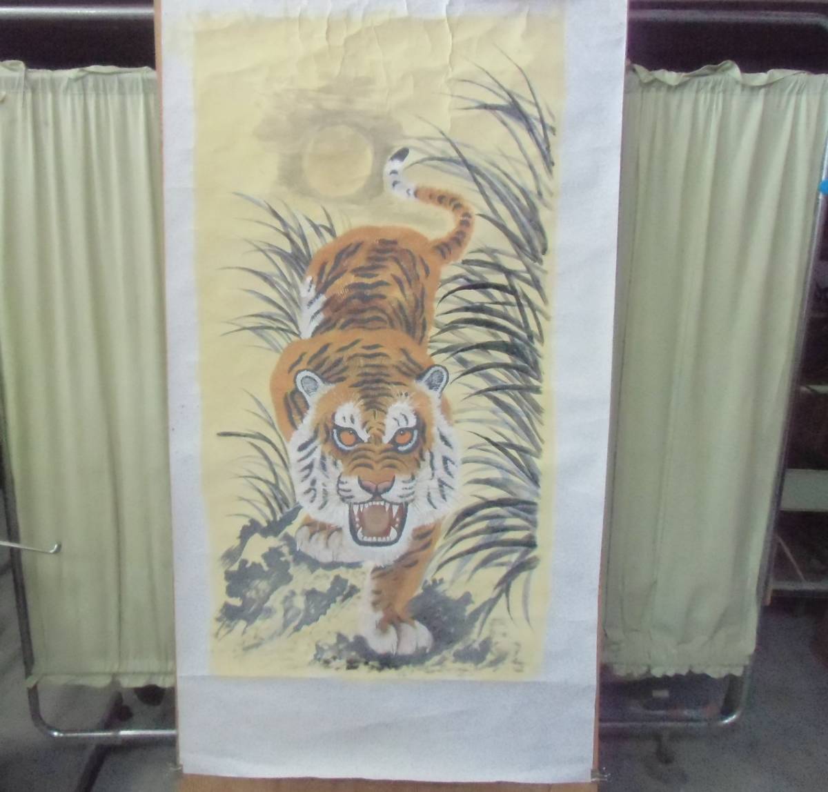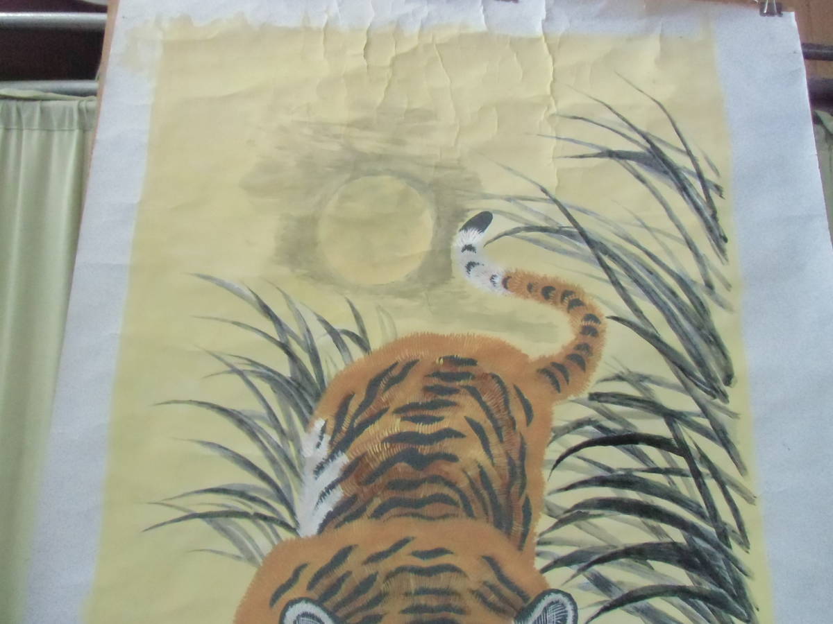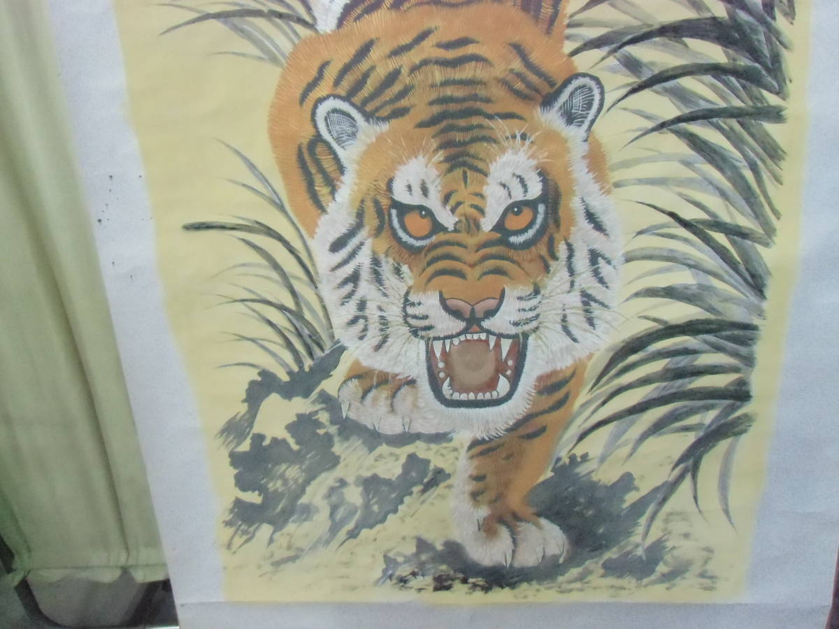 ▲モ-355 日本画 虎 無落款 紙本 豪華版 寸法:縦164cm 幅90cm 特大画 当時物 ※寸法は画像下参照