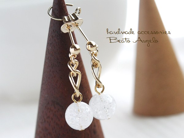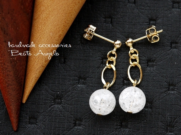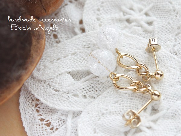 ◆◆+angelo+天然石クラック水晶のチェーンピアス(p-008)G フィガロ シンプル 夏 ポストピアス