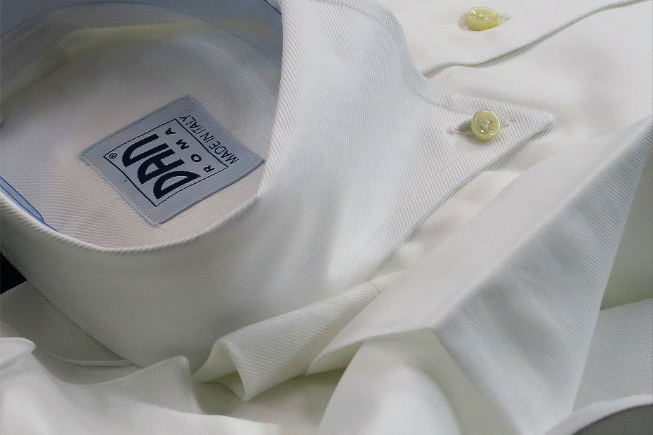 ★イタリアシャツ白DANROMA ドゥエボットーニ STRESA TWILL L 42-93 上質な糸をしっかり綾織りにTWILL撚りあげました!