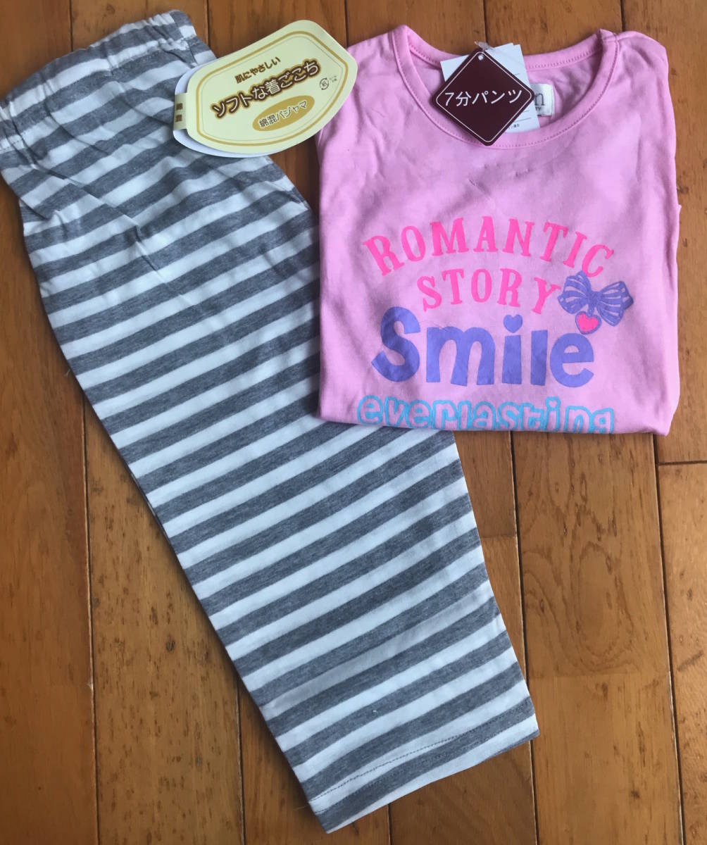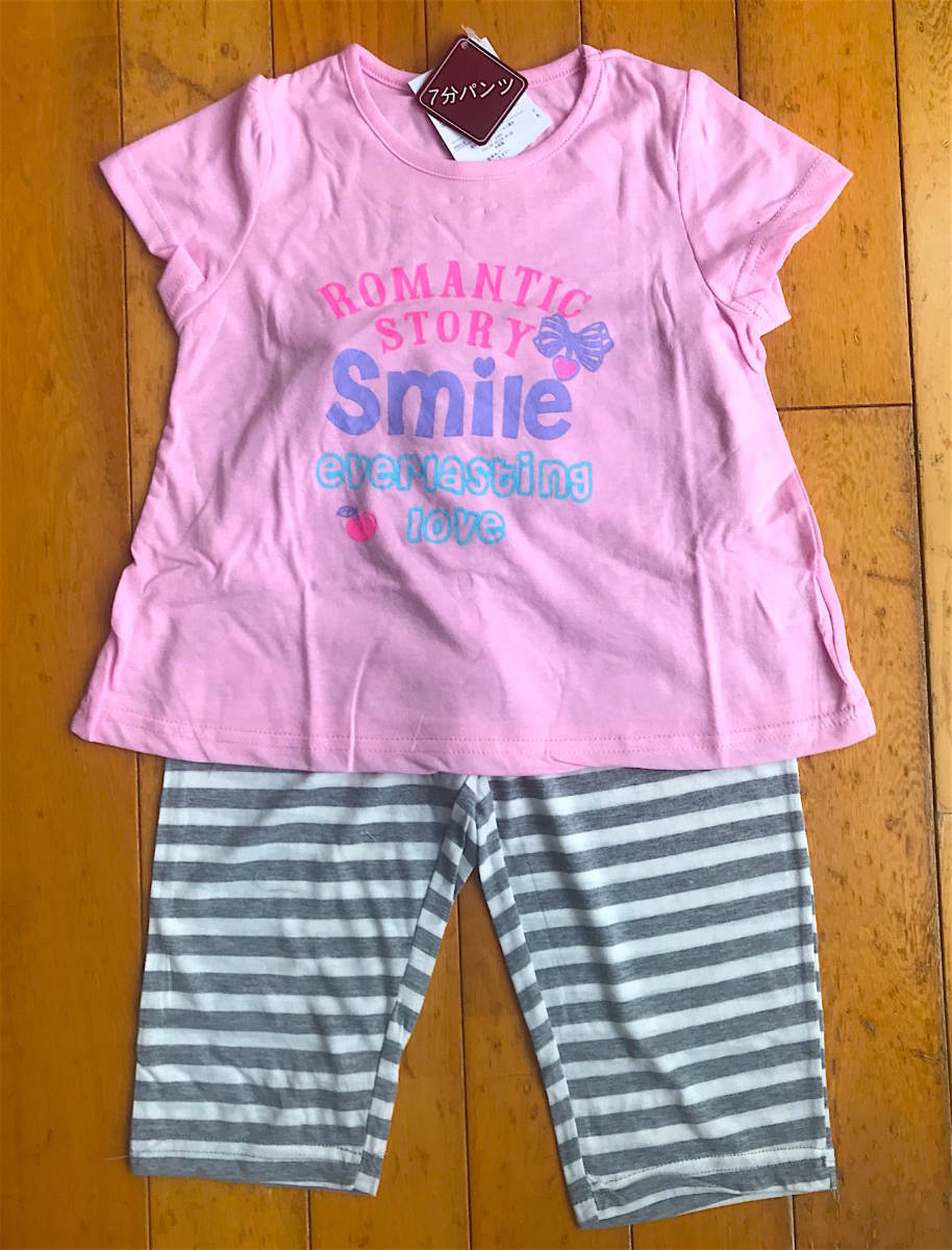 処分品 新品タグ付 Calon★キッズ 子供 女児★ソフトな着ごこち 綿混 半袖パジャマ 七分パンツ★100cm ¥1650★アウターや部屋着にも