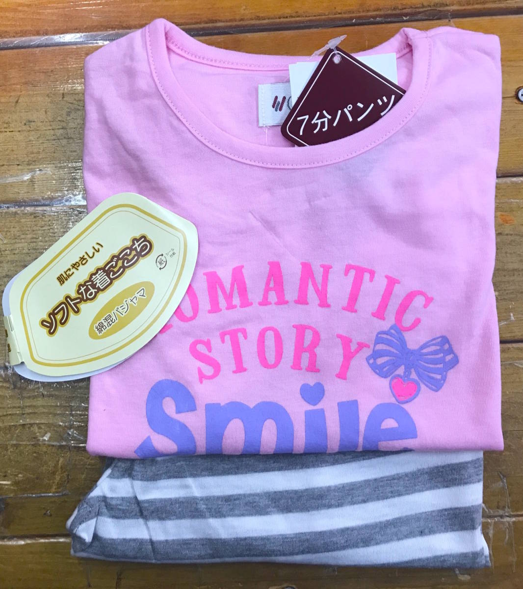 ・カラー:Tシャツはピンク系、パンツはグレー系。画像と実物とは若干色が違うことがあります。