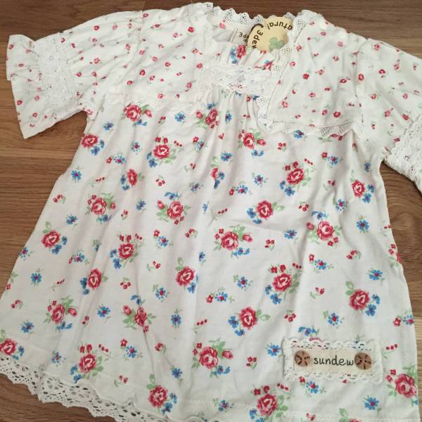 胸元やお袖、裾のコットンレースが女の子らしい一枚です。