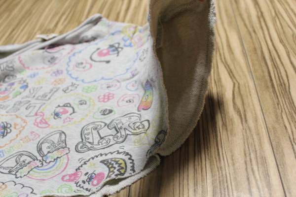 袖口にあたる部分は袖から約10cmほど縫ってあり、手首が通せるようになっています。(写真参照)