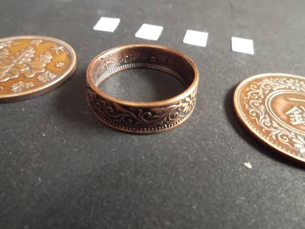 14号  コインリング  桐1銭青銅貨  ハンドメイド指輪 送料無料 (1039)