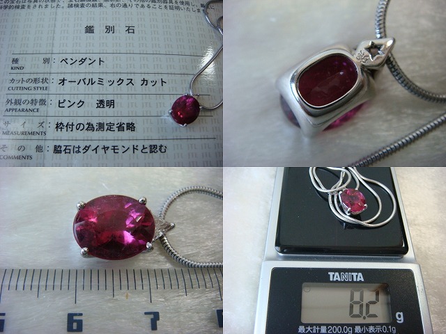 | ご覧頂きましてありがとうございます! シンプルなピンクトルマリンとトライアングルダイヤのペンダントです。18WG製です。750刻印入り。 海外制作のジュエリーのため、ピンクトルマリンとダイヤのカラット数の刻印はありません。 ピンクトルマリンはおおむね2カラット位と思われます。 チェーンは18WGです。750の刻印があります。長さは約40cmです。全体の重さは約8,2gです。 鑑別書付き。 追加画像がありますのでパソコンでご確認ください。 宝石との出会いは一期一会です。『いいな』と思ったら是非、身につけてあげて下さい。きっと宝石も喜ぶことでしょう! 宝石は決して貴女を裏切りません。身につけた貴女を守ってくれることでしょう。 いつも頑張っている自分へのご褒美にいかがでしょうか? 良いものをひとつお持ち下さい。一生物のジュエリーとなります。チェーンはペンダントトップからはずれません。 画像での判断は難しいと思いますが、落札後の返品、クレーム等の無きよう、ご自分の自己責任においてご入札下さい。 モニター、パソコン、カメラによって色や感じ方が変わりますのでご注意下さい。 商品についてはコレクター、質屋さん、お客様の委託品が中心ですので、ご質問の答えが遅くなる事がありますがご了承下さい。 商品説明につきましてはすべてをお知らせできませんので、質問にてお願いいたします。 基本的にはUSED品ですので、その点を十分にご理解の上ご入札下さい。 途中で出品を取り下げる場合もありますがご了承下さい。 尚、トラブル回避の為、申し訳ございませんが、新規の方及び評価によってはこちらで入札を削除させていただく場合もございますが、ご理解下さい。 メールの確認は夜になりますのでご連絡が遅くなることもありますがご了承願います。 品物にも人と同じように『こころ』があると思います。喜んでいただけることが私にとっても品物にとっても一番良いことだと思います。 『落札したけど気に入らなかった』ということが無いように十分にお考えになってからご入札下さい。 発送は宅配便を予定しております。また発送には2,3日かかる場合もございますが、ご了承願います。 お互いに気持ちよい取引のため、落札後3日以内のご連絡、5日以内のご入金頂けない場合は申し訳ございませんが取り消しさせていただきます。 落札金額より僅かですが『子ども虐待防止 オレンジリボン運動』へ寄付をさせていただきますがご了承お願いいたします。 | |