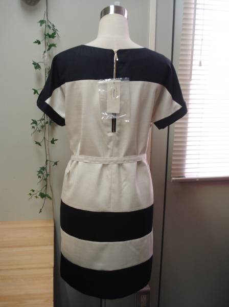 新品訳あり☆Mayleaf*裾ボーダー柄エレガント半袖ワンピ―ス 9号