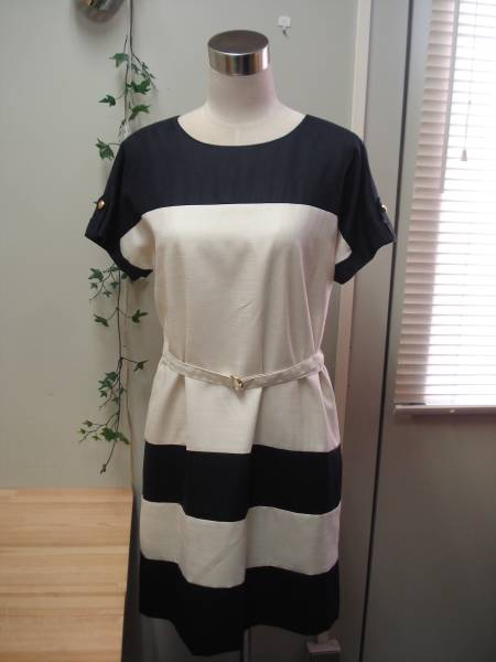 新品訳あり☆Mayleaf☆裾ボーダー柄 エレガント半袖ワンピ―ス 9号/w286-87