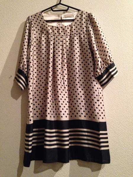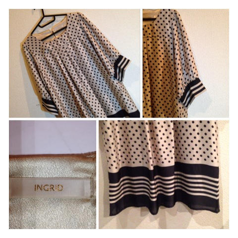 商品名 INGRID イングリッド ドットボーダー 五分袖ワンピース ベージュ