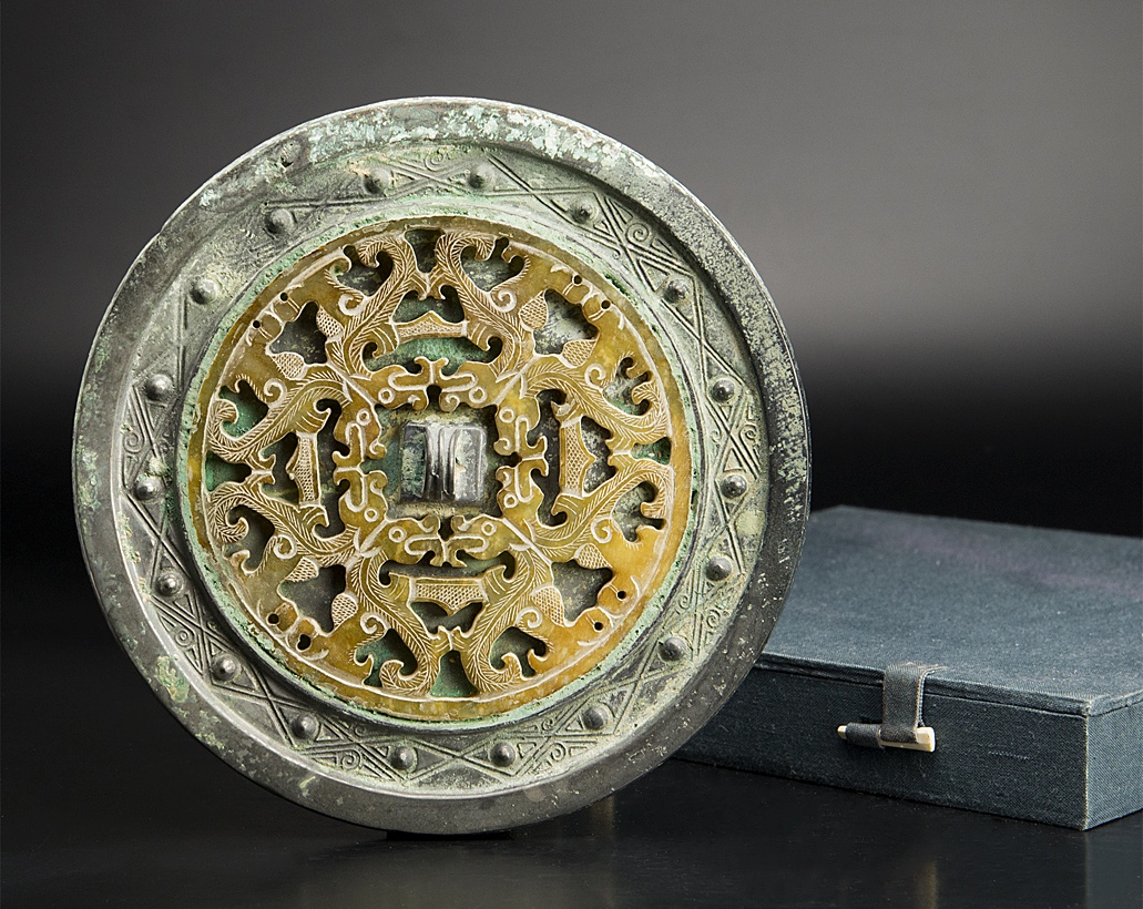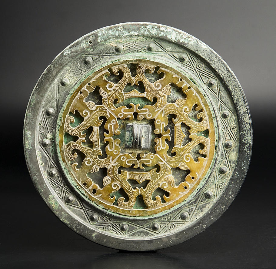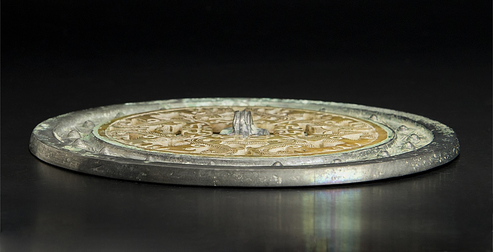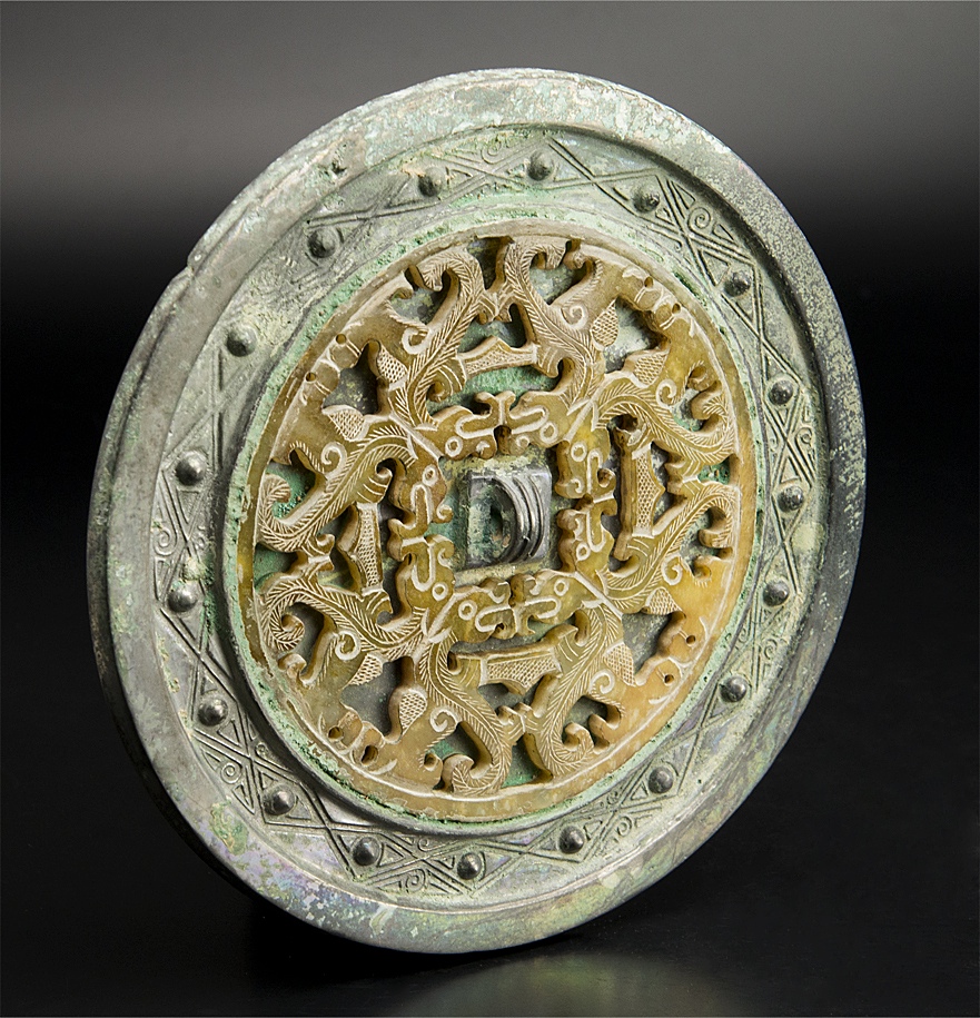 青銅嵌玉螭龍紋鏡 中国 古美術