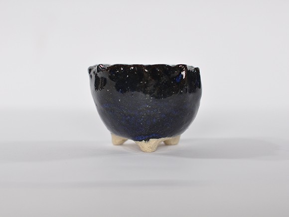 一つ一つ個性がある可愛い鉢 手ひねりの小丸三足 深青【3号】【山野草】【信楽焼】作り手の温もりが伝わる鉢です