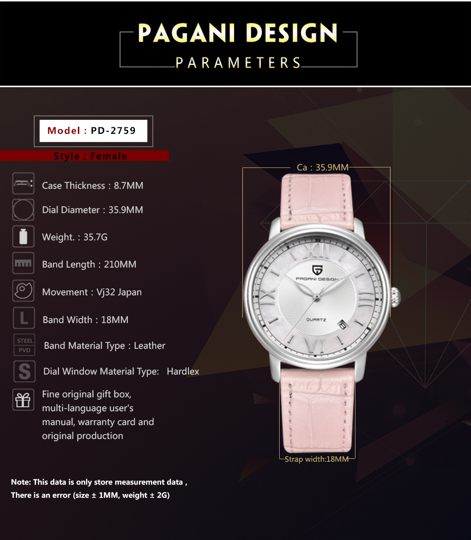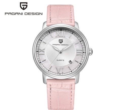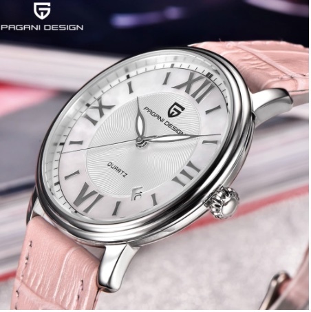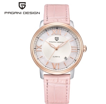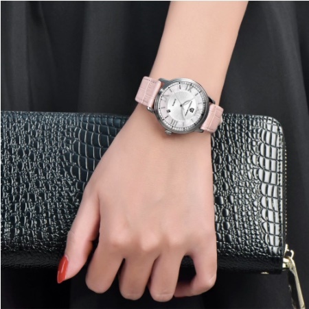 ファッションカジュアル女性クォーツ時計自動日付ピンクエレガントなケース革防水女性の腕時計