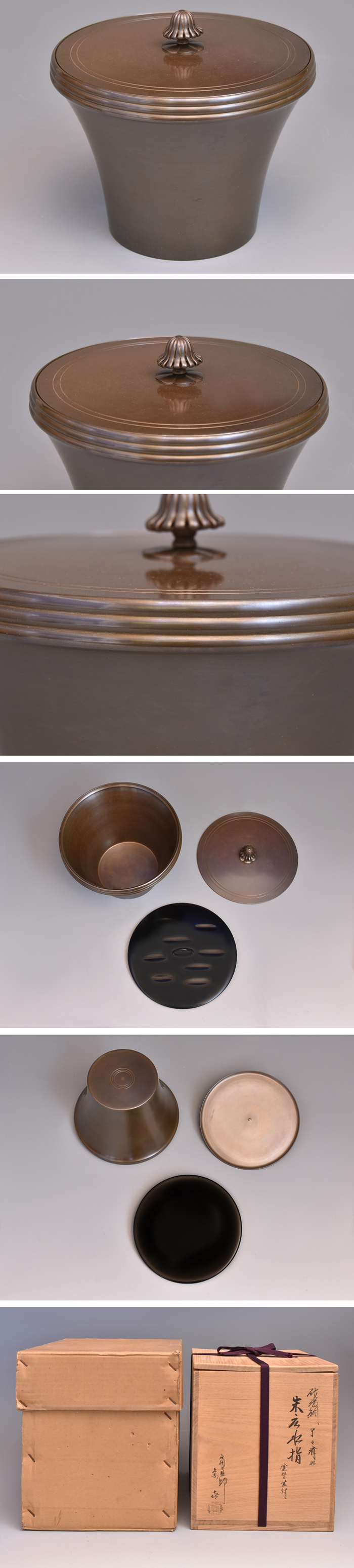 了々斎好み 佐波理銅 末広水指 共蓋 誂え塗蓋付 藤井宗喜(作) 共箱 茶道具 表千家 |